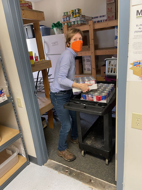 Back on campus, Lorie spent most of the day reorganizing the food pantry.