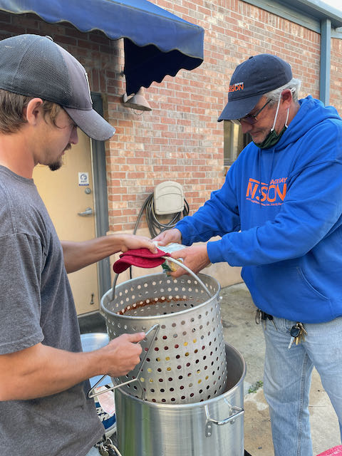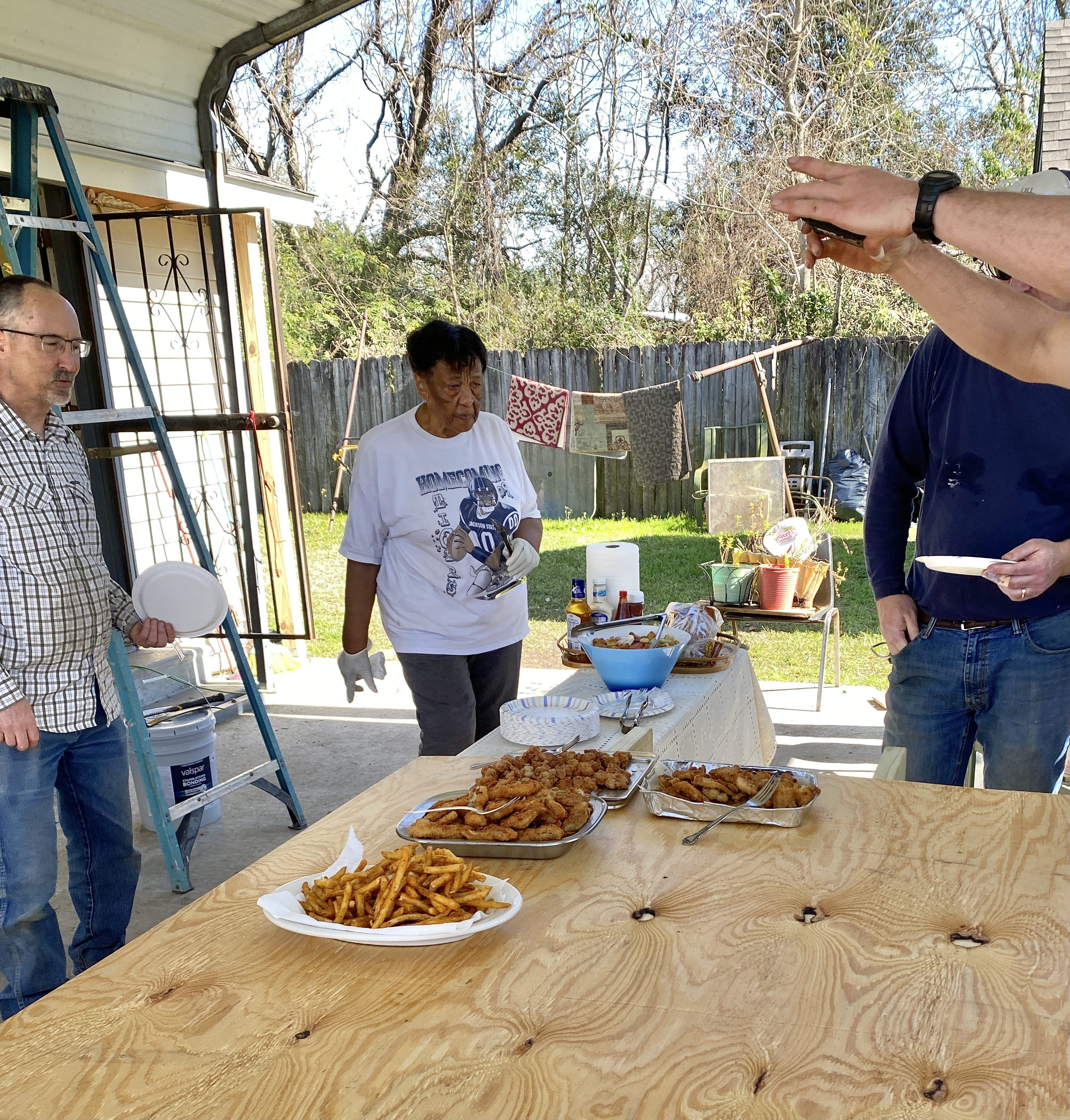 As the crew finished Miss Jessie’s roof, she delivered the promised fish fry to the grateful workers.
