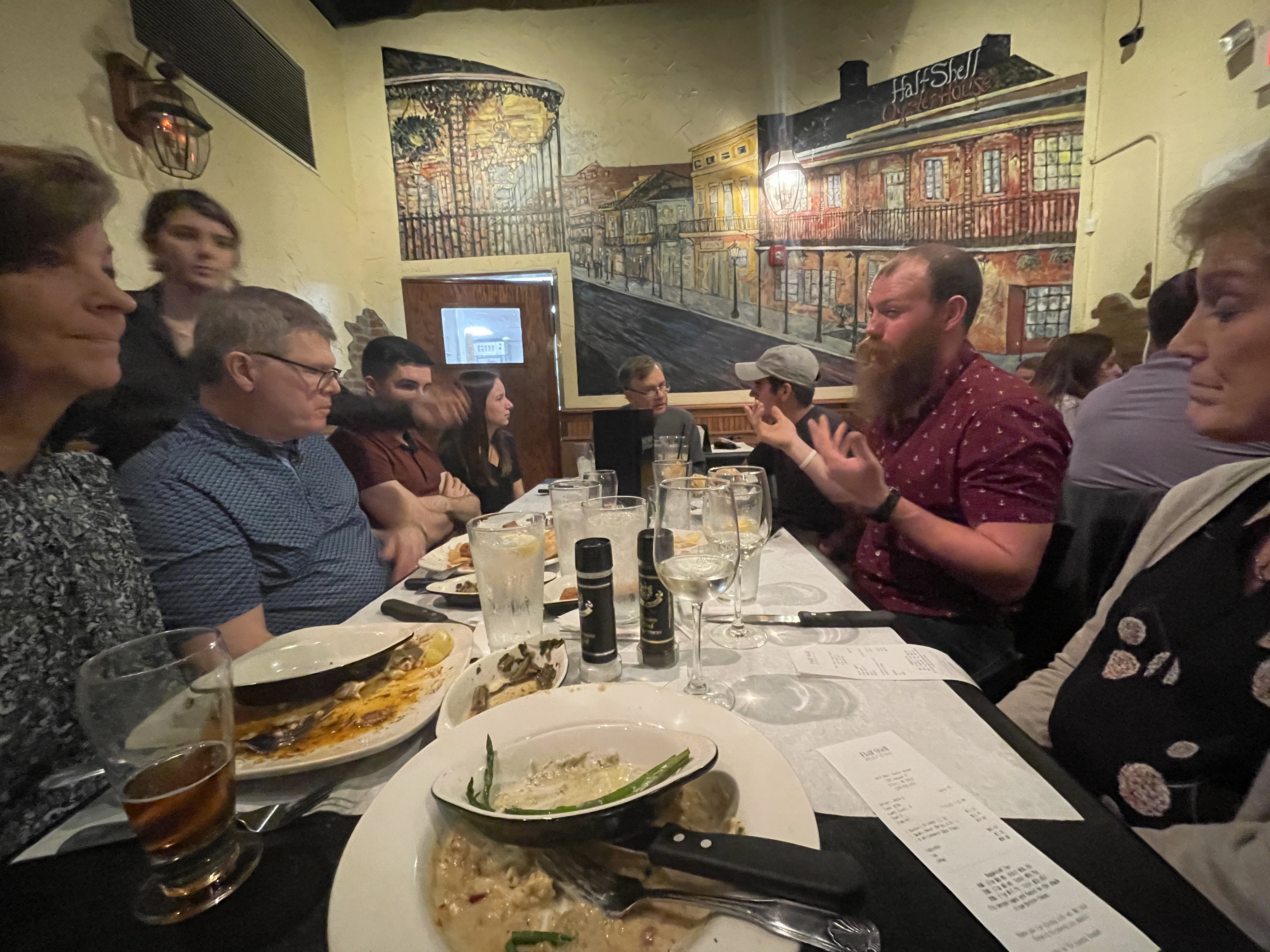 Our Thursday tradition is dinner at the Half Shell Oyster House. Since there was no trip to New Orleans this year, everyone came.