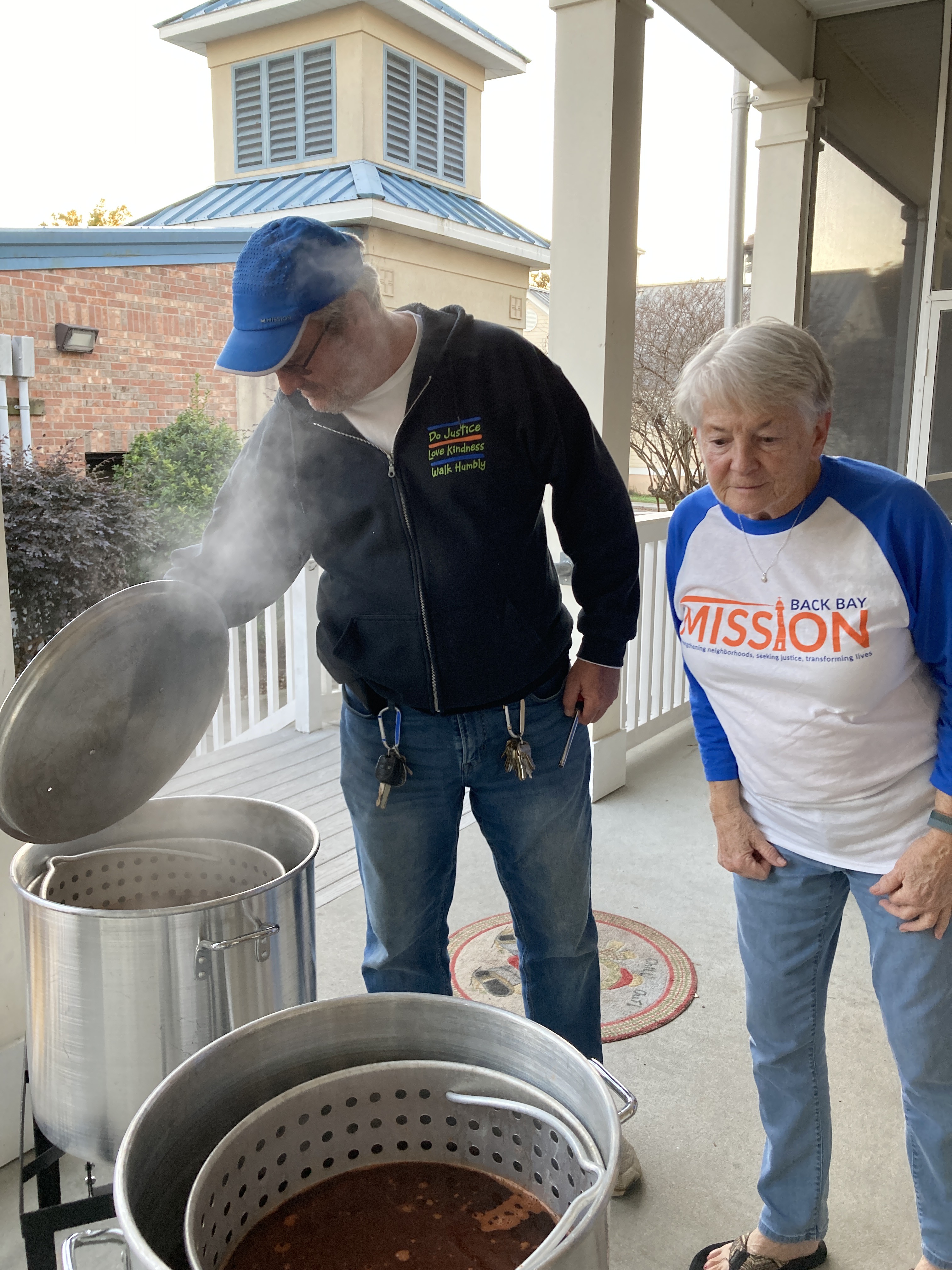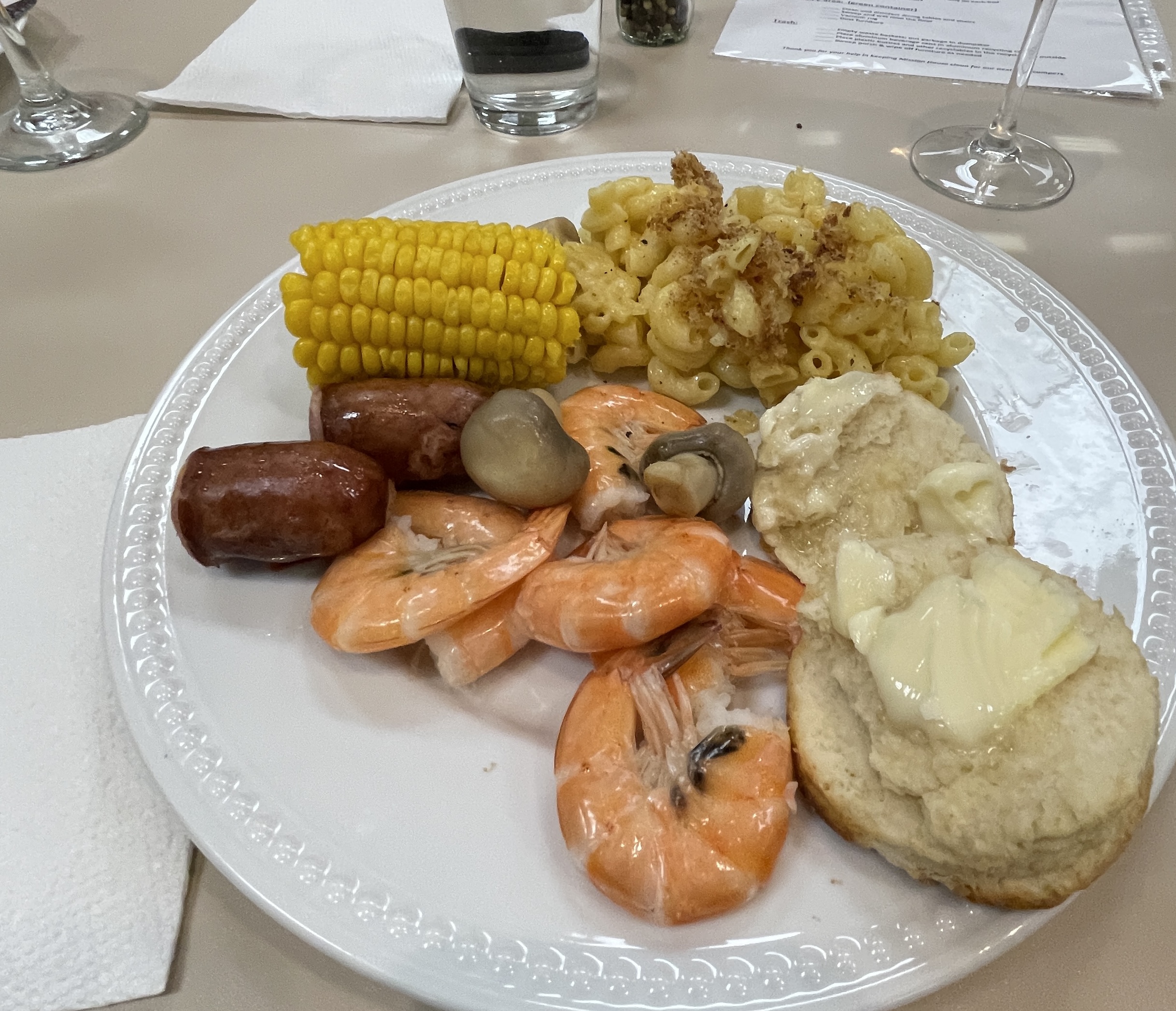 For our final dinner, Craig cooked a sumptuous shrimp boil for us, comprised of shrimp, smoked sausage, corn, potatoes, pineapple and mushrooms; and we added mac and cheese, Jack’s famous biscuits and salad. Brownies and ice cream topped it all off. A meal to remember! Home tomorrow after a satisfying week of fellowship, hard work, many laughs, friendships made and renewed, and the knowledge that we have done good work for the people n the Gulf Coast.