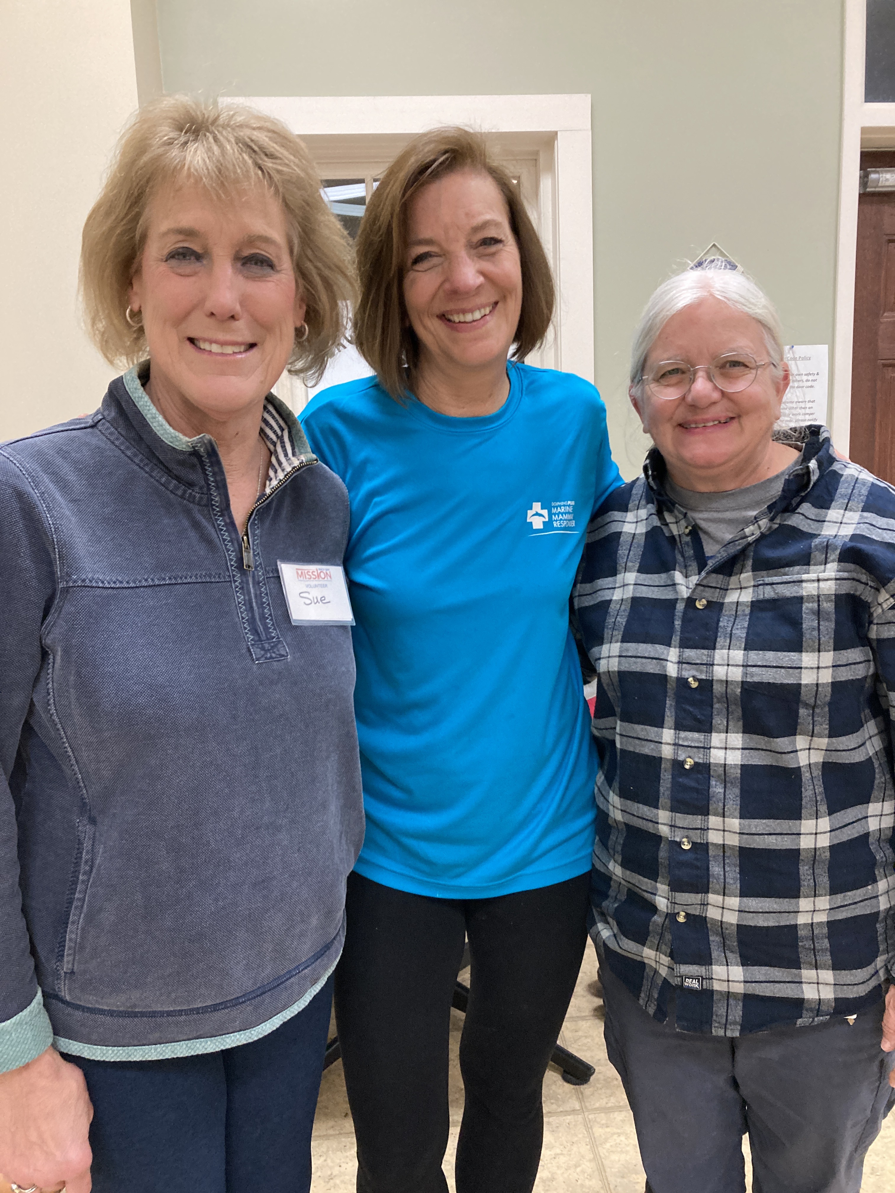 Meanwhile, Sarah, Mary, Anisa, Lorie and Sue set off for Sam’s Club to purchase some items to donate to Loaves and Fishes, and got stranded when the brake fluid totally drained out of Sarah’s car. Diana leapt into search and rescue mode, arriving just as the rain started. After a harrowing drive through torrential rain, lightning and thunder, we arrived at the mission house, getting totally drenched just running from the parking lot. We were lucky, thoug, as dangerous storms and tornadoes raced across Alabama, Georgia and northern Mississippi, leaving death and destruction.