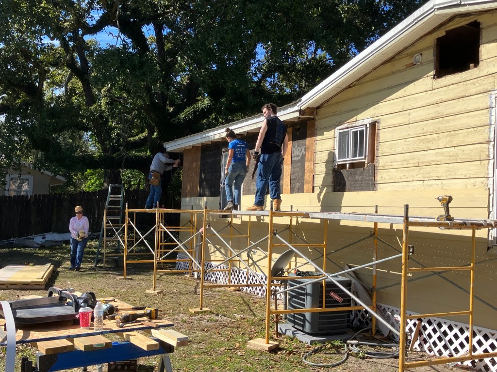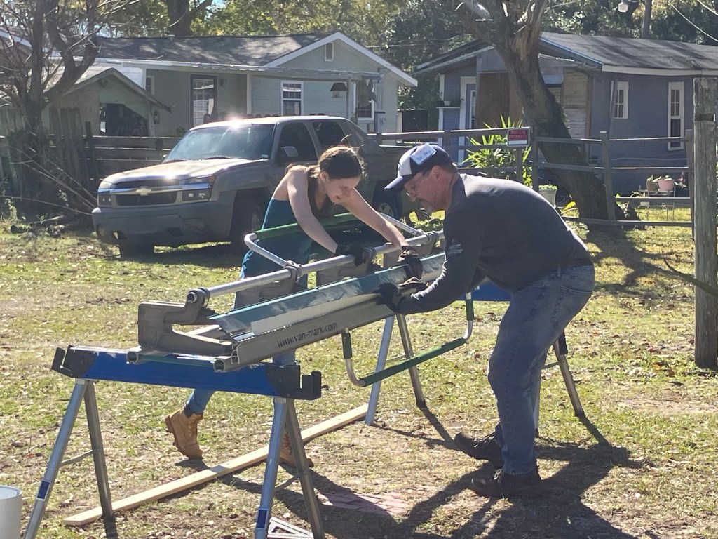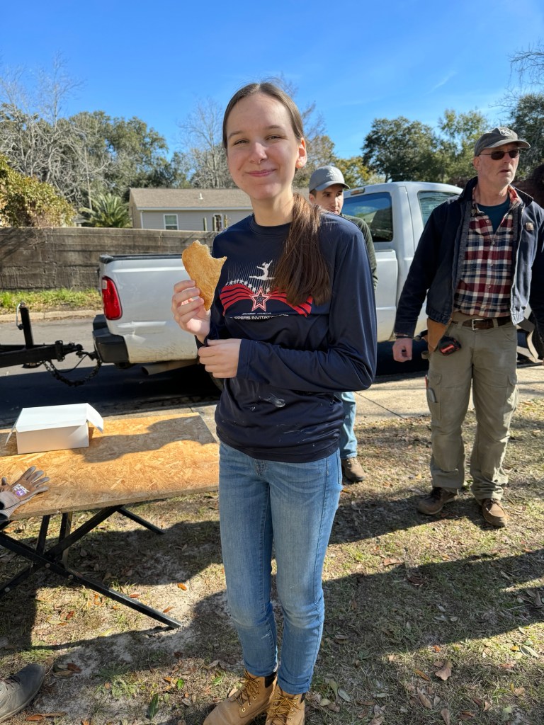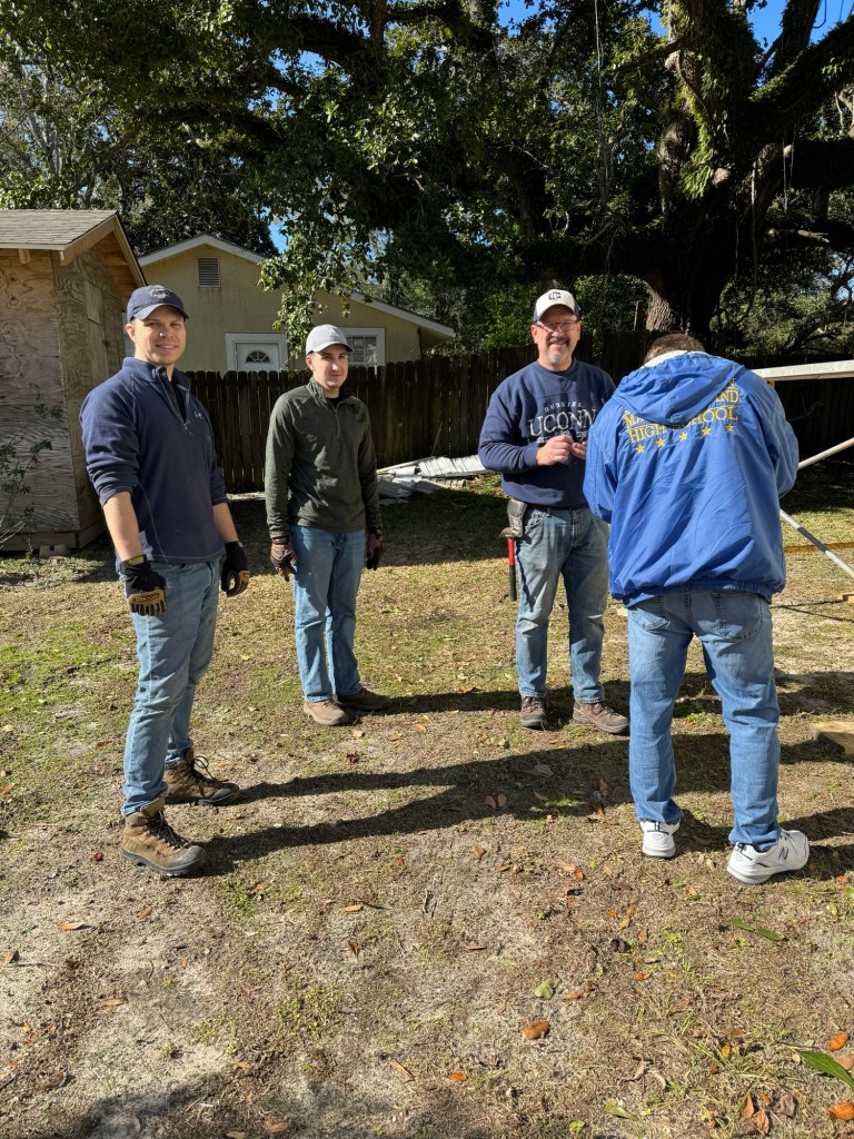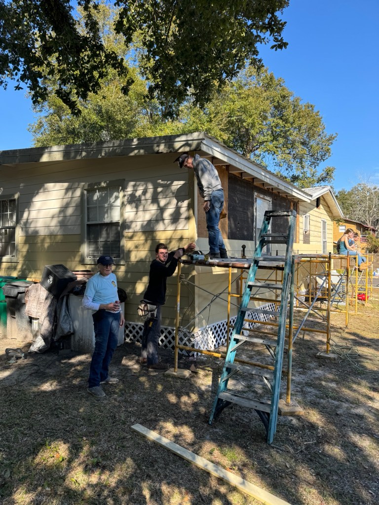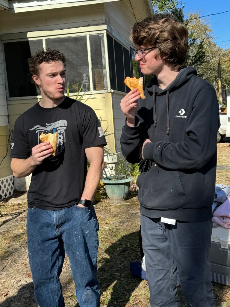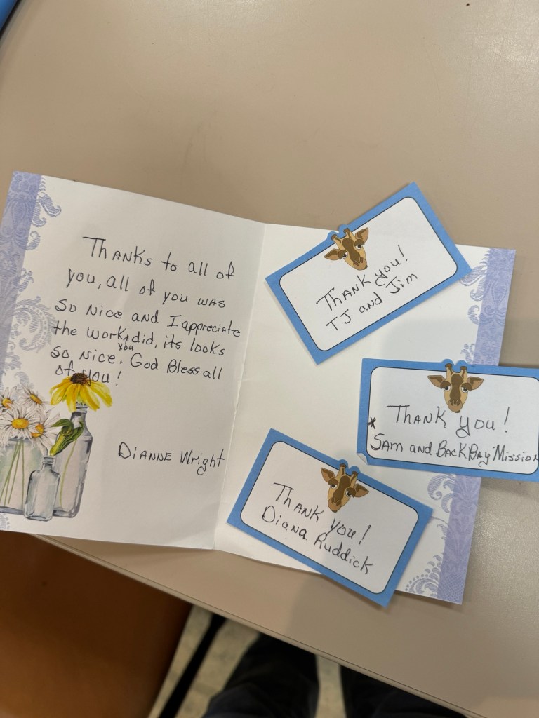 The wild weather has blown away, and this was a perfect day to be at the new worksite. Our homeowner Dianne from earlier in the week was so grateful — she delivered a thank you note with personalized inserts for each of us.