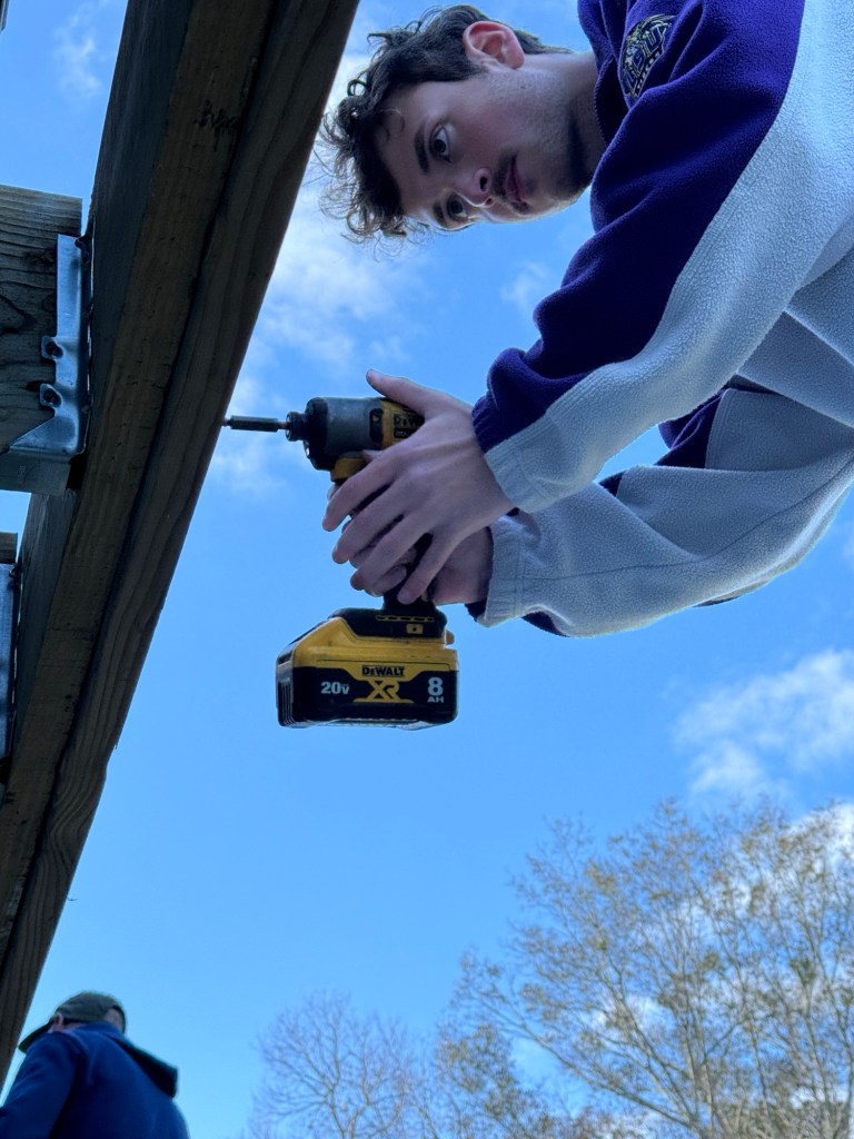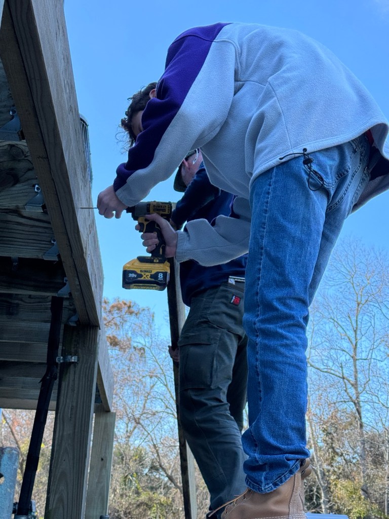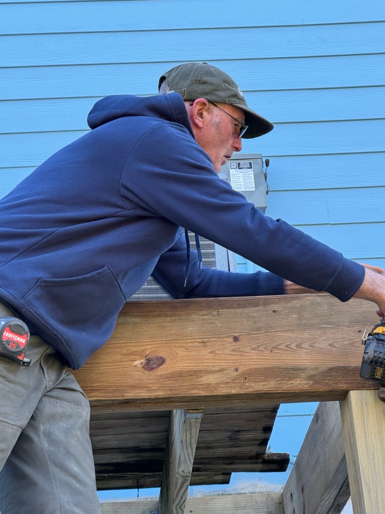 Scaffolding was erected on the backside of the Mission House for the first project, which was rebuilding the deck supporting the air conditioning units.