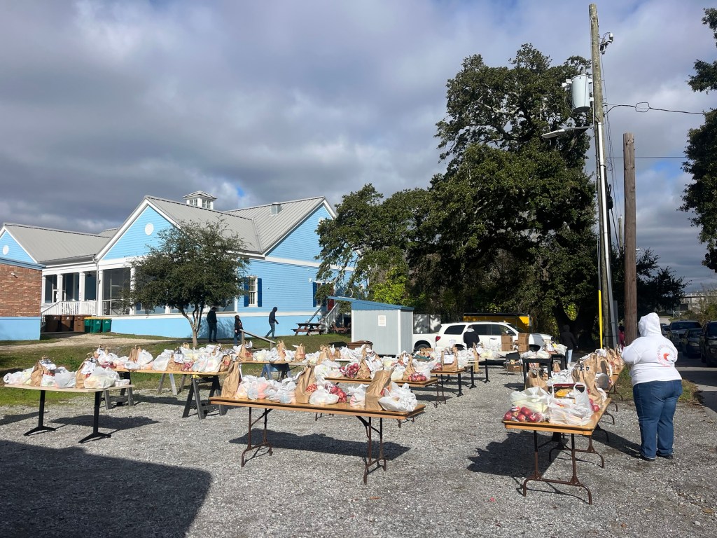 After the big food giveaway on Monday there remains the huge task of dealing with pounds and pounds of frozen food and other provisions that have to find a home in the food pantry. Several people have made good headway with that.