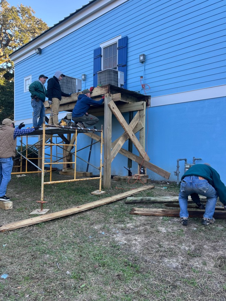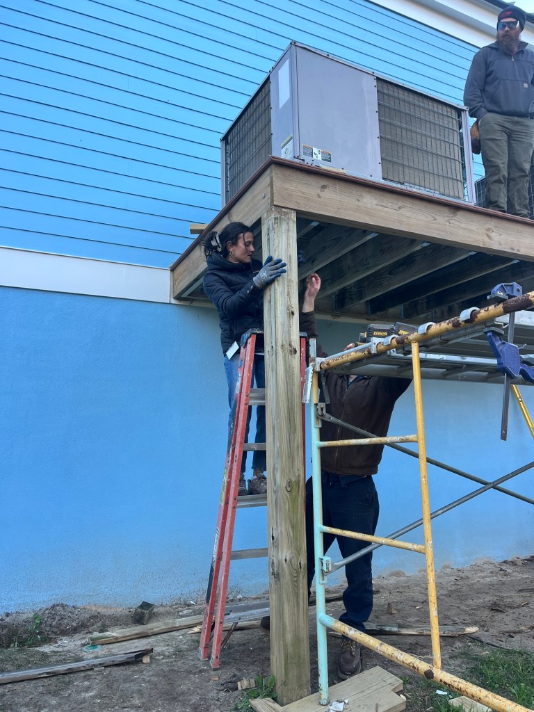Rebuilding the deck holding the A/C units took longer than originally expected, but the crew wrapped it up this afternoon. Painting at Homeport continues, ably handled by John and Darlene. And a larger crew is now at the worksite in Gulfport.