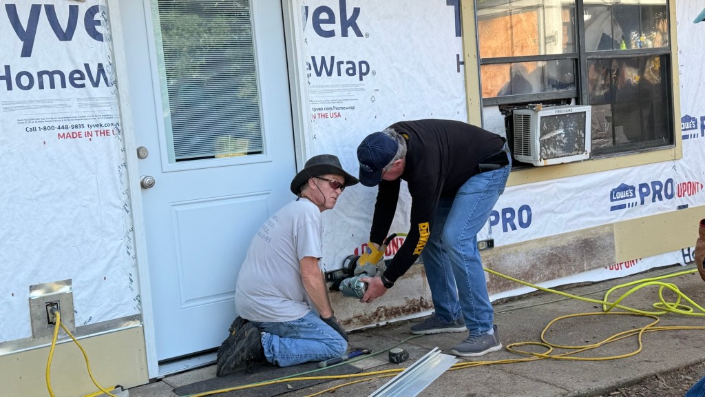 Jerome and his sister Juanita, the homeowners, are over the moon about the improvements we’re making to their house. Here’s Jerome with our new friend Liz, who has made a terrific addition to the team. Thanks, Doug!