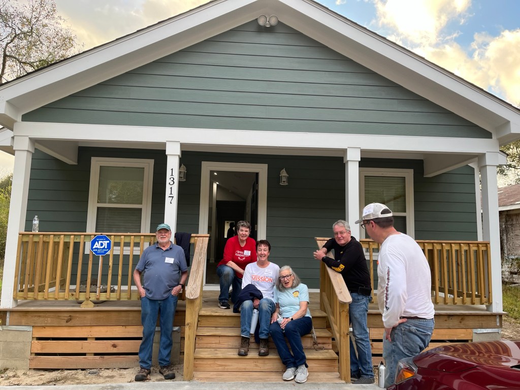 Yesterday and today Alan and Daniel made great progress on the new build, and by today, with help from Carol-Lynne, Ginny and Lori, it was pretty well complete. And Jack and John arrived for the photo op! It’s a sweet little bungalow.